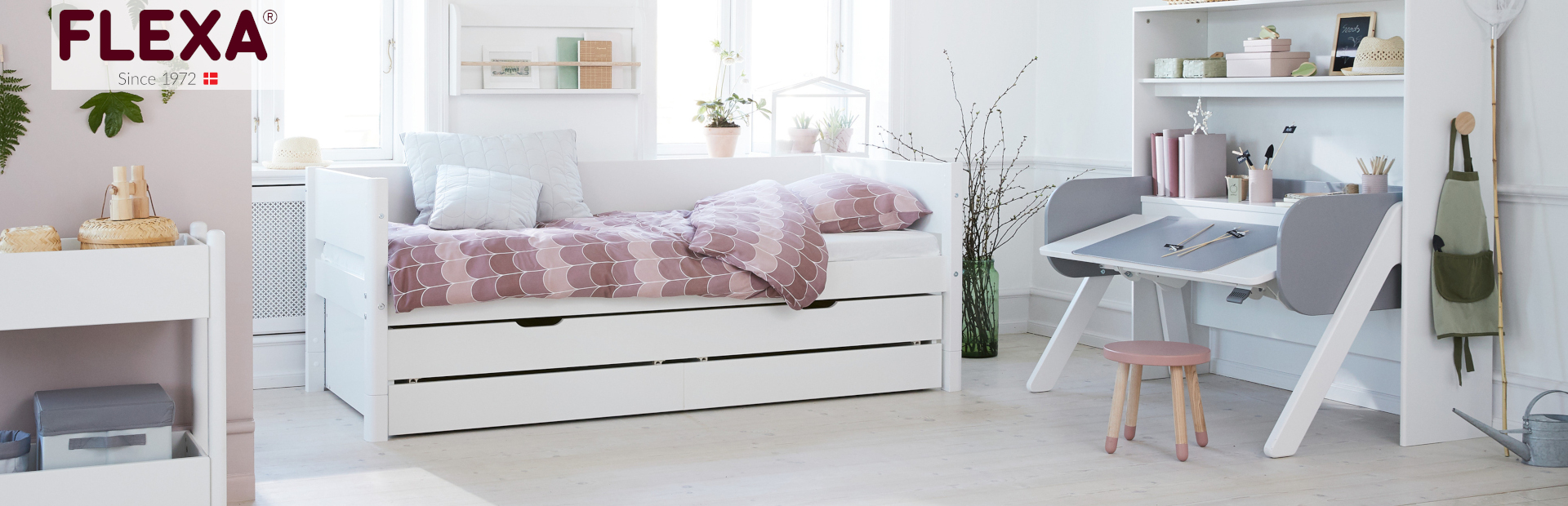 Auf die Plätze, fertig, los! Seit mehr als 45 Jahren lässt FLEXA mit einzigartig gestalteten Kindermöbeln und Einrichtungsgegenständen Kinderherzen auf der ganzen Welt höherschlagen. Dabei verbindet der Hersteller dänisches Design mit höchsten Sicherheits- und Qualitätsstandards. Die Möbel der innovativen Kollektionen werden aus langlebigen Materialien hergestellt und sind dazu entworfen, mit dem Kind und seinen individuellen Bedürfnissen mitzuwachsen. Entdecken Sie unsere Auswahl!
