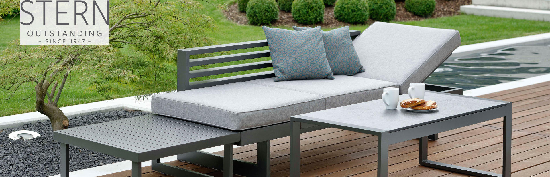 Seit über 70 Jahren arbeitet STERN mit Leidenschaft, Kreativität und Know-how an der Entwicklung unvergleichlicher Möbel für Ihren Außenbereich. Die Materialspektrum des Markenherstellers erstreckt sich von leichtem Aluminium über puristisches Edelstahl bis hin zu klassischem Geflecht oder Teak. Lassen auch Sie sich von den exklusiven und unverwechselbar schönen Gartenmöbeln von STERN begeistern. Einfach stilvoll die Natur genießen!