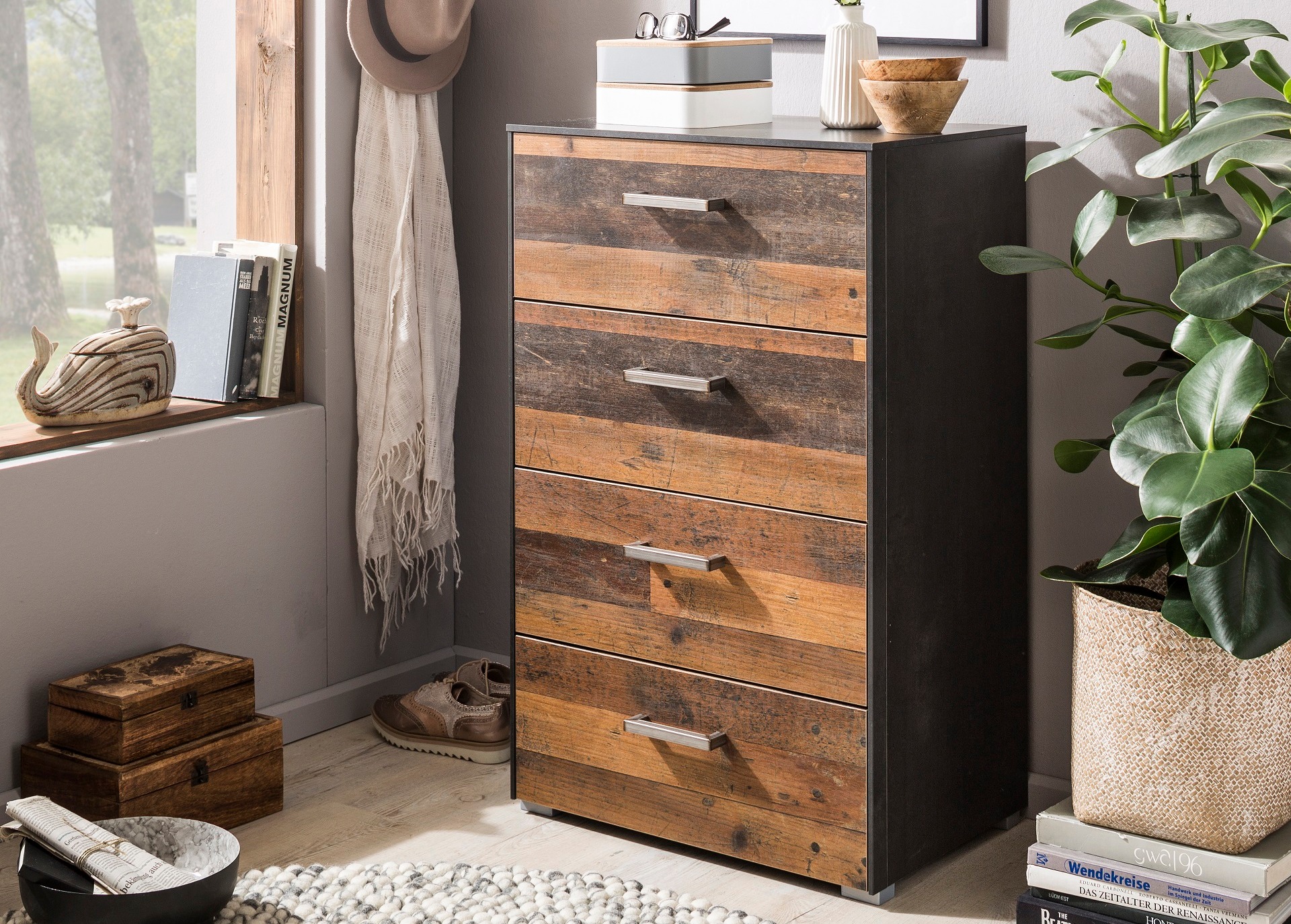 Kommoden sind – je nach Modell – ebenso schmal geschnitten wie Sideboards, weisen jedoch eine größere Höhe auf. Die Schränke benötigen nur wenig Stellfläche, bieten aber jede Menge Stauraum – und das hauptsächlich in Form von Schubladen. Klassische Kommoden verfügen meist über mehrere Schubfächer, in denen Sie beispielsweise Kleidung und andere Habseligkeiten unterbringen können. Die kompakten Schränke sind gerngesehene Möbel im Schlafzimmer, Wohnzimmer oder in Fluren und Dielen.