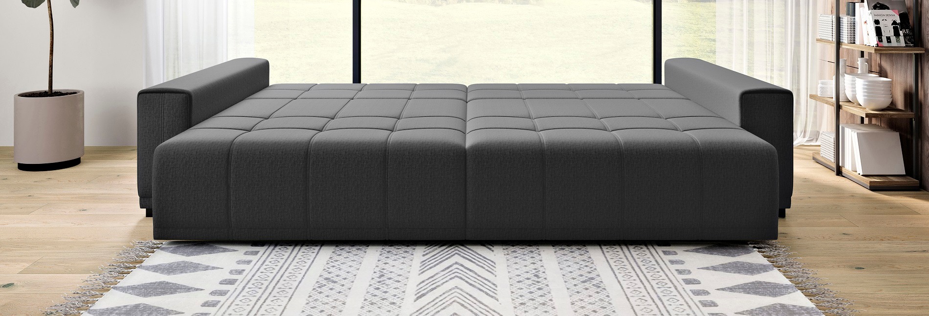Einzelne Sofas verfügen sogar über eine Schlaffunktion und bieten so Platz für Übernachtungsgäste. Meist lässt sich die Rückenlehne durch einen Klappmechanismus im Handumdrehen zur erweiterten Liegefläche umfunktionieren. Bettkästen sind je nach Modell ebenfalls im XXL-Sofa integriert – diese bieten zusätzlichen Stauraum für Bettdecken und Kissen.