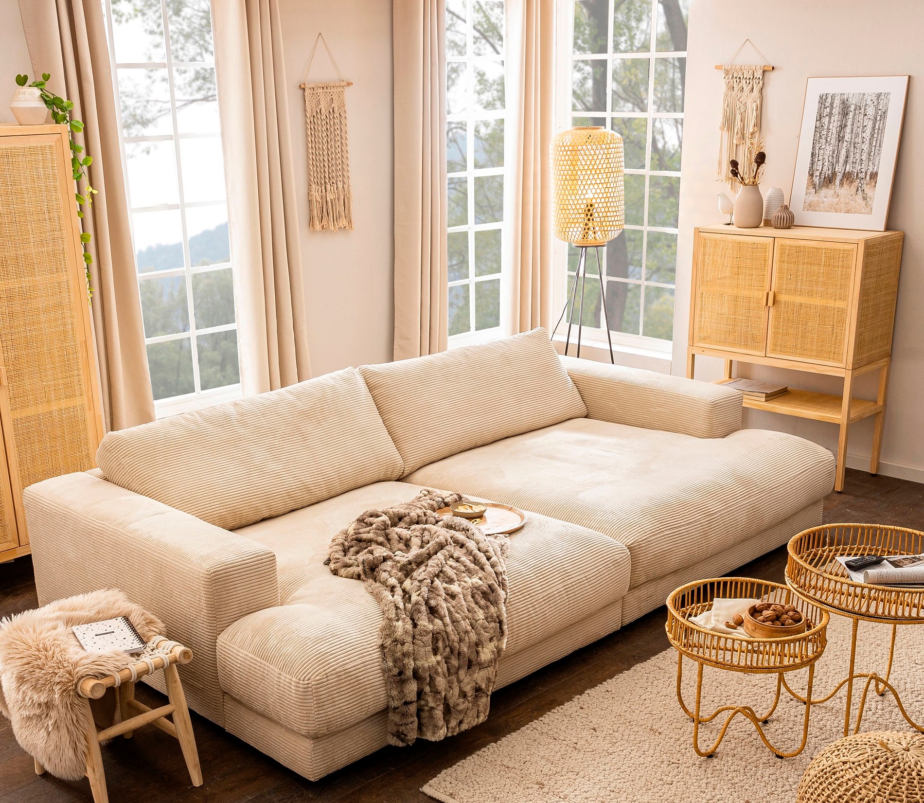 Grundsätzlich sind Bigsofas die idealen Möbel zum Einrichten großer Wohnzimmer. Dort ist die nötige Stellfläche gegeben, um die üppigen Sofas bestens in Szene zu setzen. Die XXL-Sofas eignen sich ideal, um den Raum zu strukturieren. Durch ihre beachtliche Größe ziehen die Wohnzimmermöbel zudem alle Blicke auf sich – mit Möbelstücken dieser Art kreieren Sie gekonnt ein Statement, das den Look in Ihrem Wohnzimmer unterstreicht.