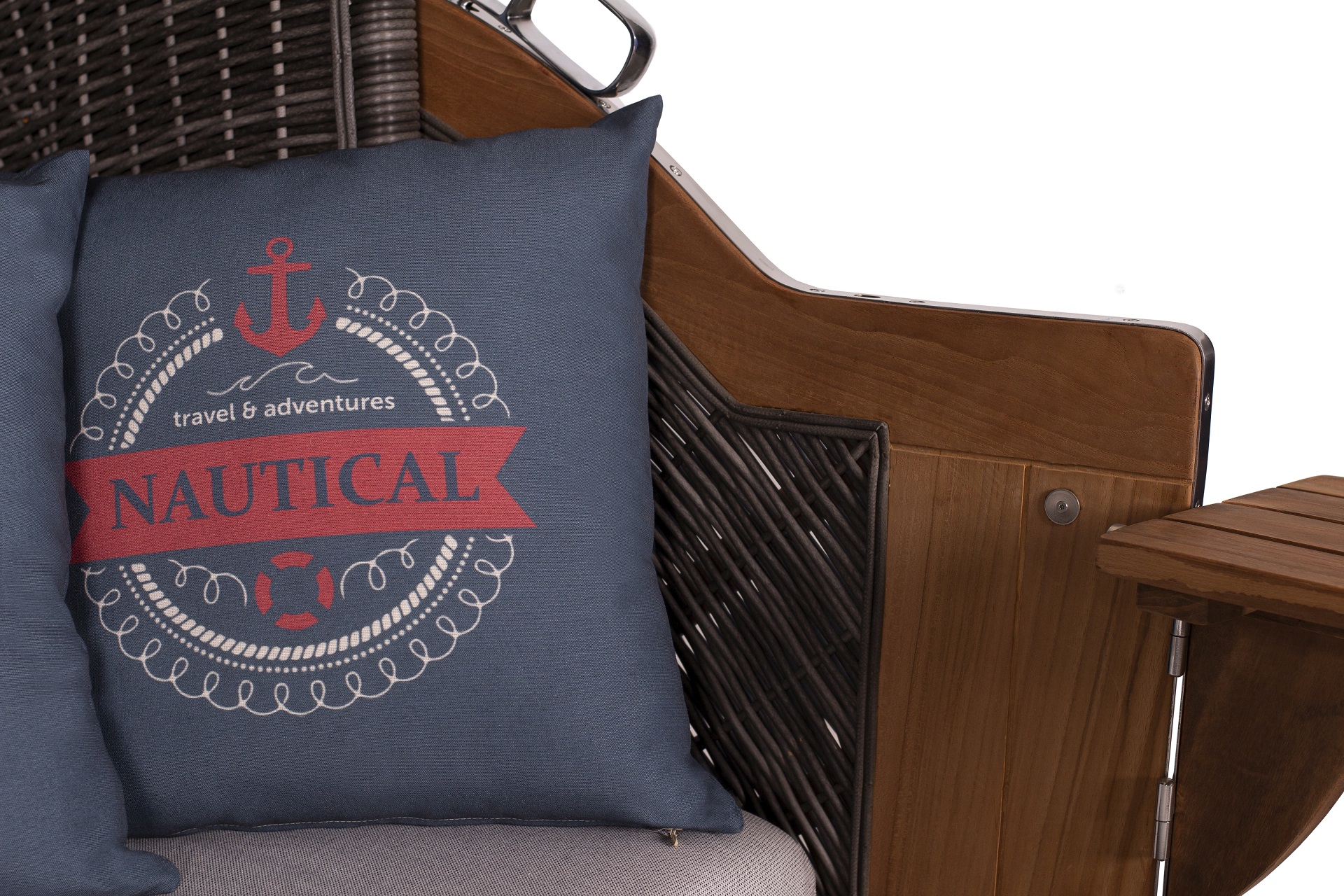 Einige Strandkörbe sind mit Bullaugen aus Aluminium, Holz oder Edelstahl ausgestattet. Diese kleinen Fenster verleihen dem Strandkorb nicht nur einen charmanten maritimen Look, sondern ermöglichen auch einen seitlichen Blick nach draußen.