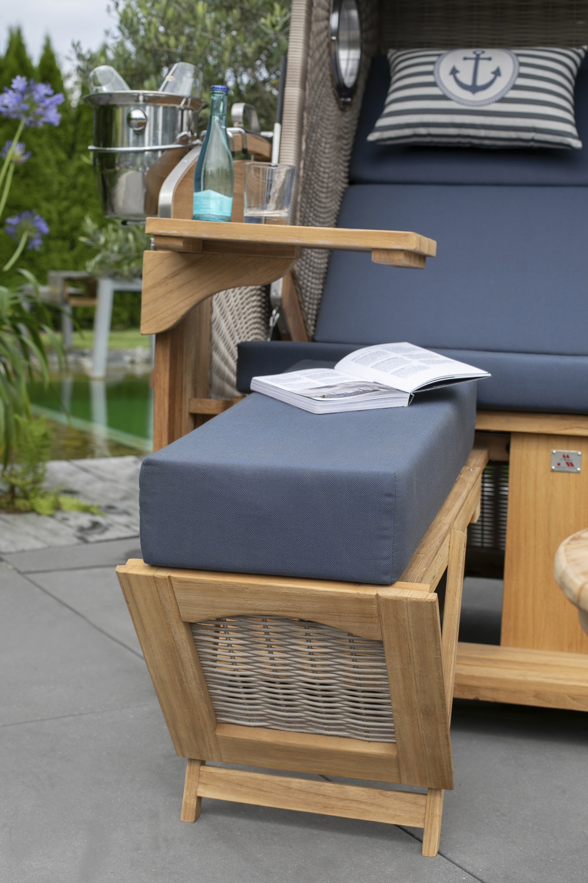 Damit auch müde Beine Ruhe finden, verfügen viele Strandkörbe über ausfahrbare Fußstützen und Fußablagen. Mit einem einzigen Handgriff ist die Fußstütze ausgefahren – für Ihre optimale Sitz- oder Liegeposition müssen Sie nur noch Ihre Beine hochlegen. Diese Funktion sorgt für eine ideale Durchblutung der Beine und beugt unangenehmen Verspannungen vor.