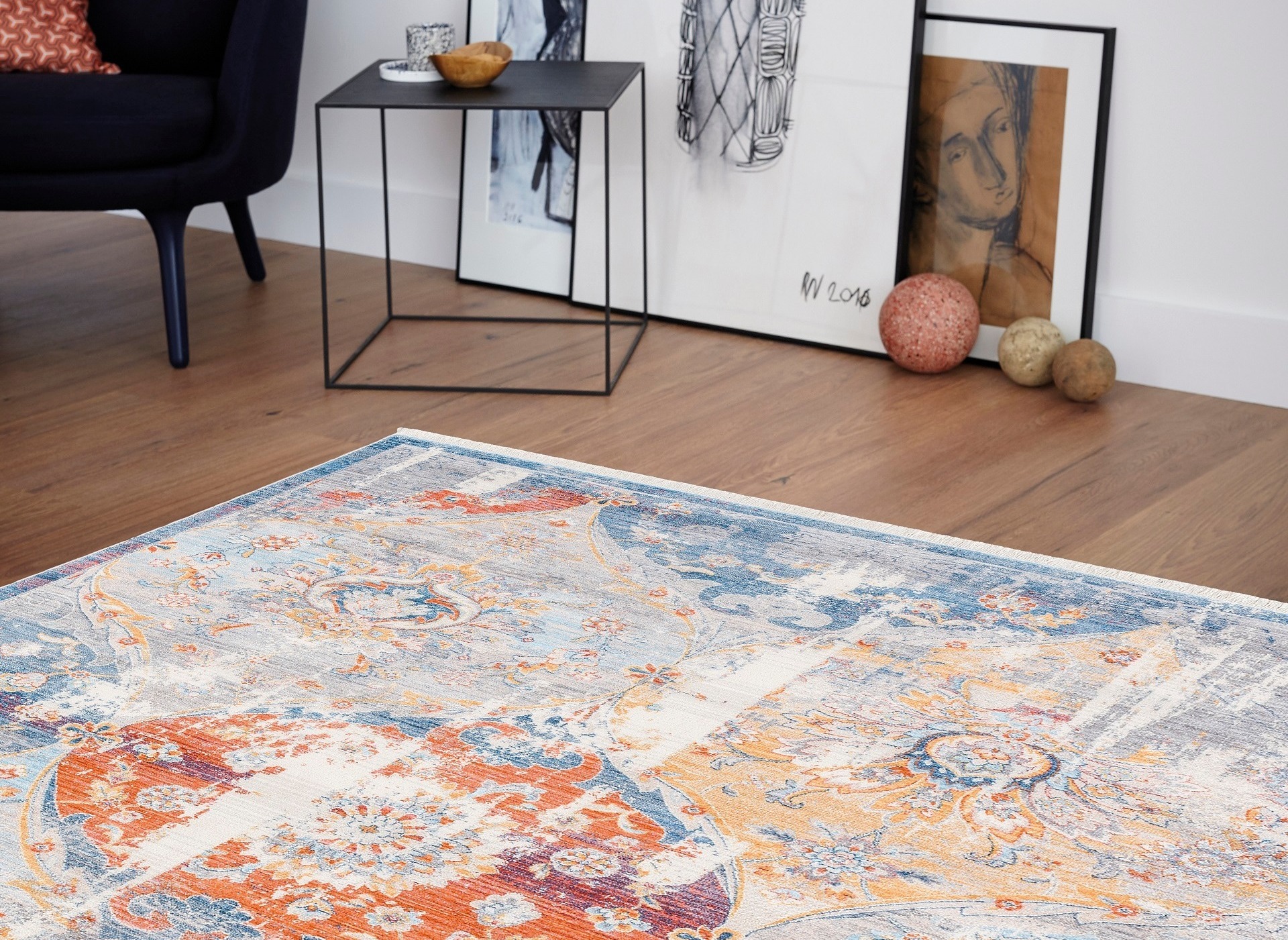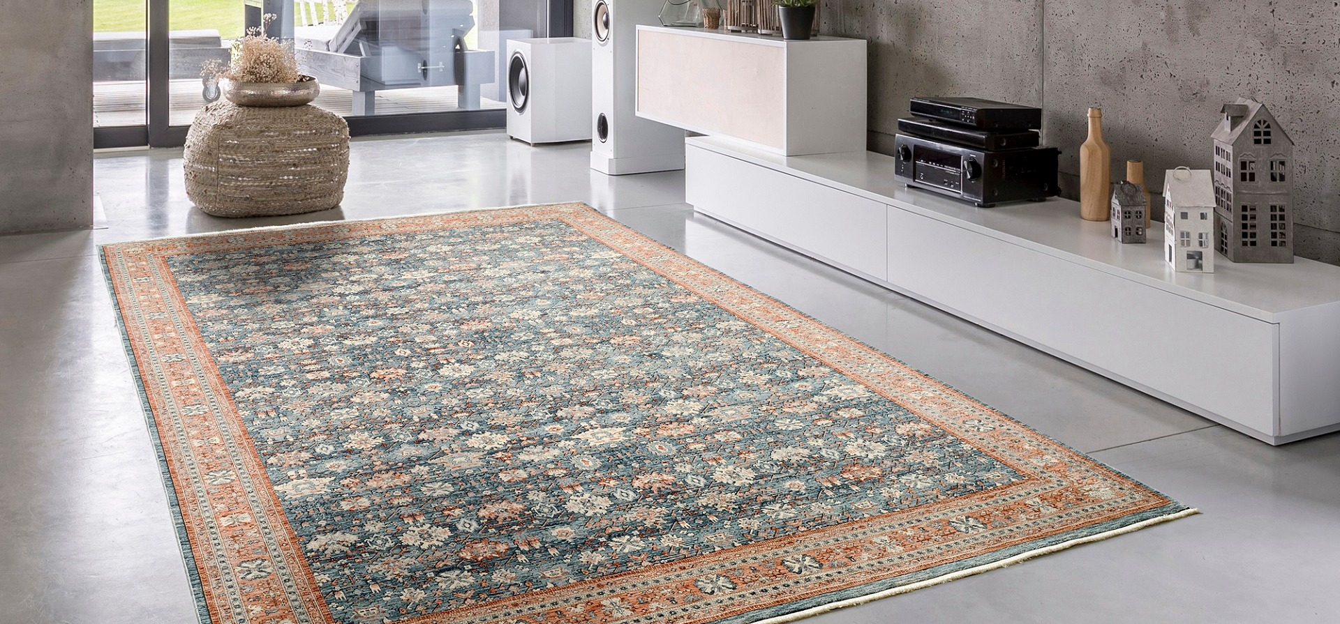 Für einen Crossover-Look kombinieren Sie moderne Möbel mit einem Vintage-Teppich. Die auf alt gemachten Teppiche zaubern mit dem Vintage-Look ein besonderes Ambiente in jedem Zimmer.