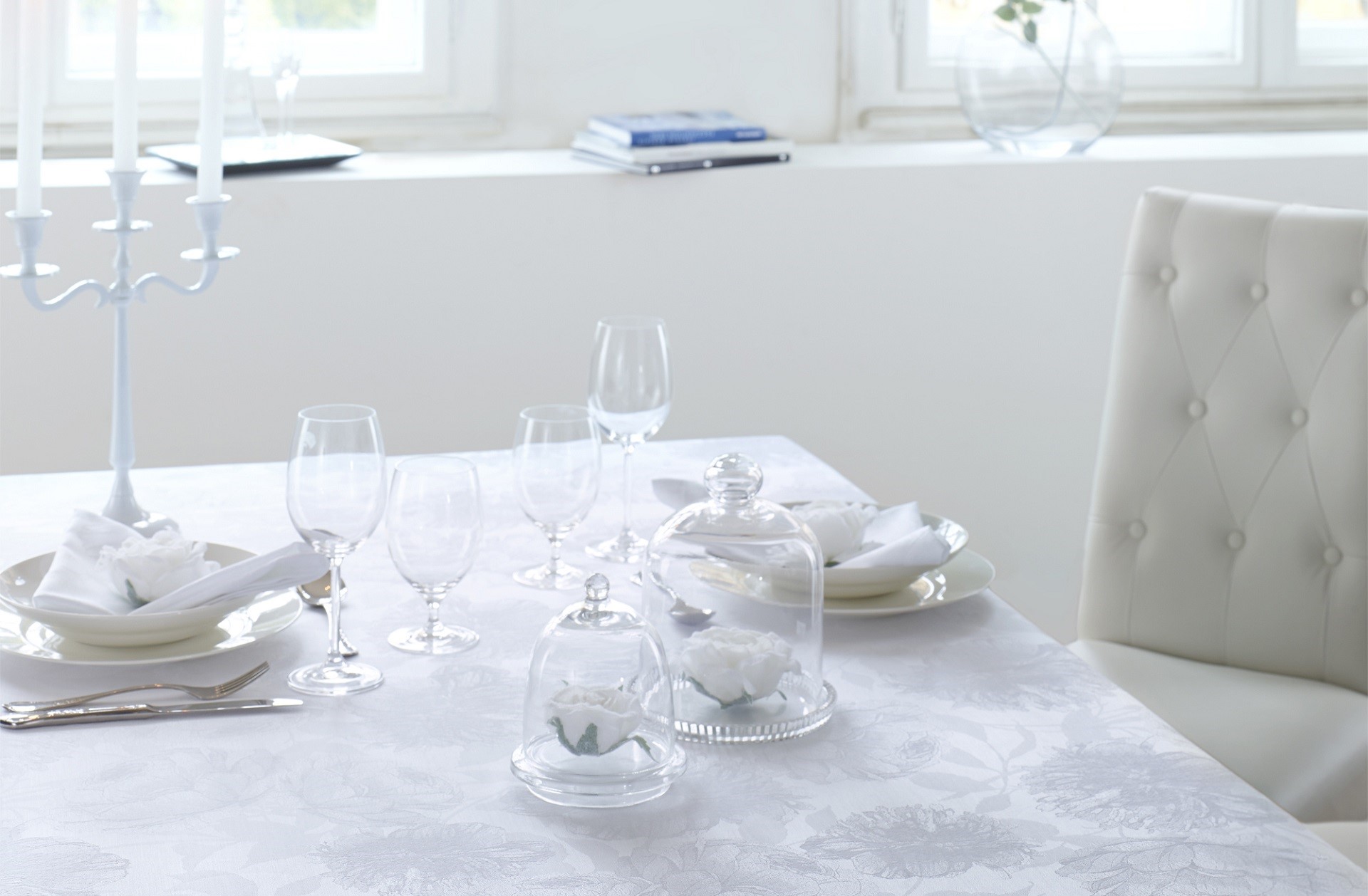 Schlicht oder extravagant: Eine Tischdecke für einen besonderen Anlass oder ein Tischtuch in Weiß sorgt für Gemütlichkeit im Esszimmer.