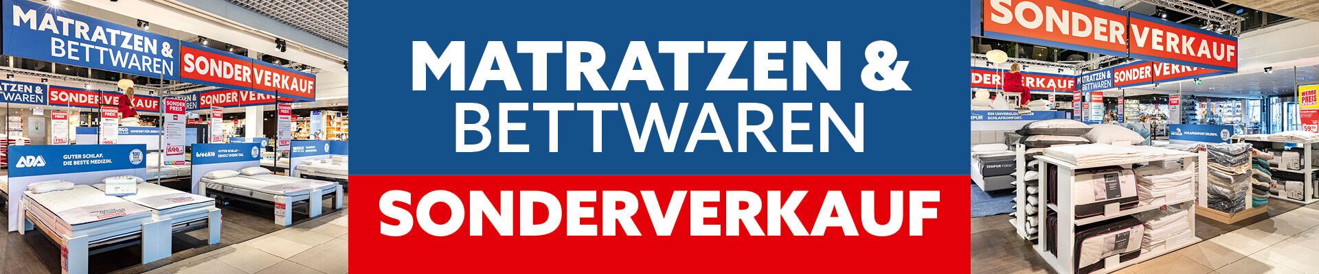 Entdecken Sie unseren großen Matratzen- & Bettwaren-Sonderverkauf im Eingangsbereich der Einrichtungshäuser Friedberg, Parsdorf, Weiterstadt und Pulheim. Unsere Experten für gesunden und erholsamen Schlaf beraten Sie gerne – zusammen finden wir die optimale Schlaflösung, genau auf Ihre individuellen Bedürfnisse abgestimmt. Es erwarten Sie:
