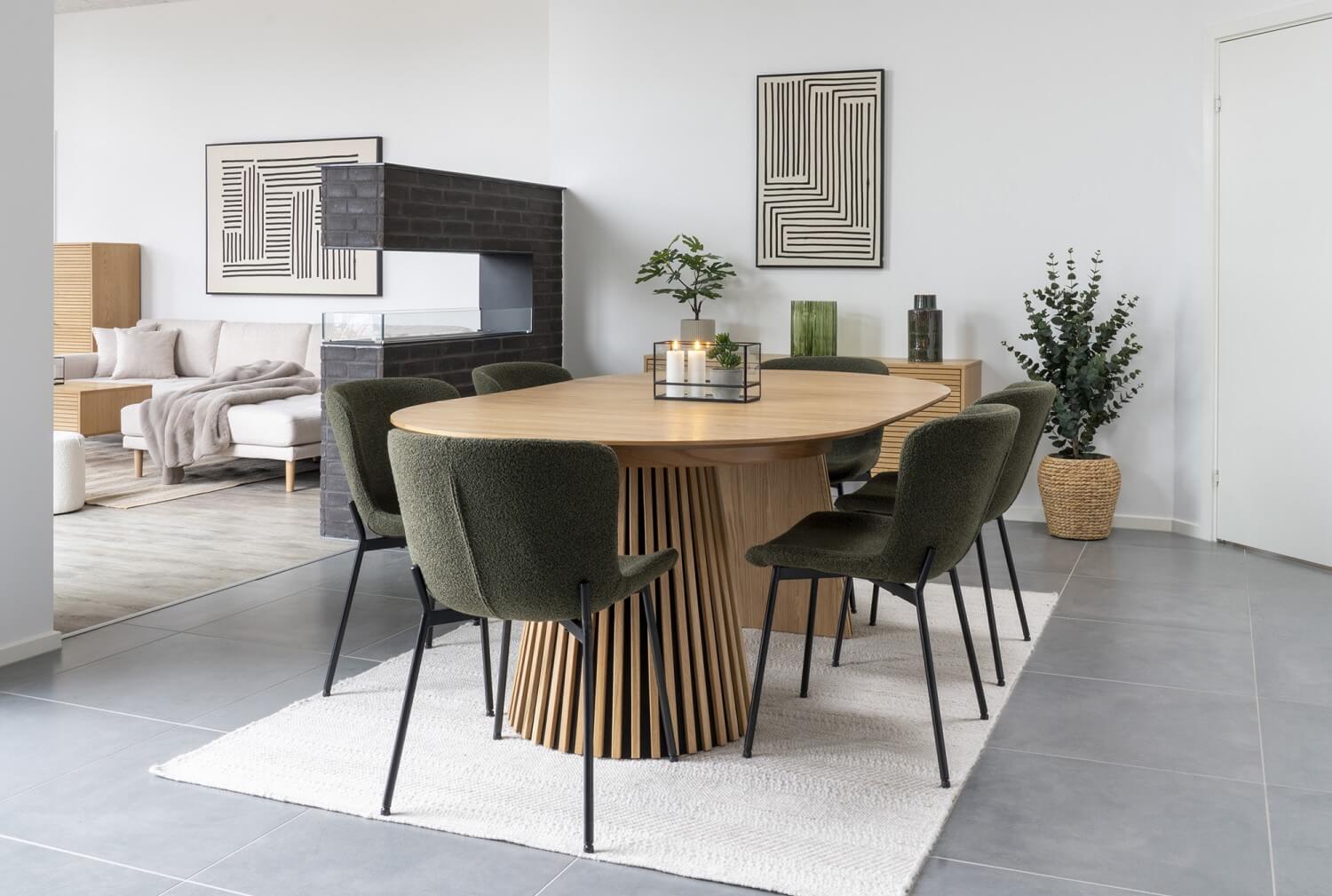 Denken Sie bei der Raumgestaltung auch an die Bewegungsfreiheit rund um den Tisch: Mindestens 70 cm Abstand zu Wänden oder anderen Möbelstücken sind empfehlenswert. So lassen sich Stühle bequem zurückschieben – und auch bei voller Tischbesetzung bleibt der Essbereich angenehm zugänglich.