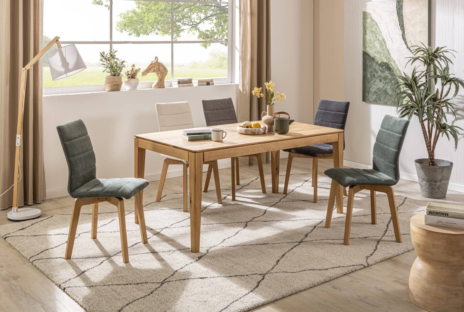 Rechteckige Esstische sind besonders vielseitig und lassen sich in der Regel weiter ausziehen als runde Modelle. Sie eignen sich ideal für größere Essbereiche und bieten ausgezogen – mit einer Länge von bis zu 320 cm – bequem Platz für bis zu 12 Personen.