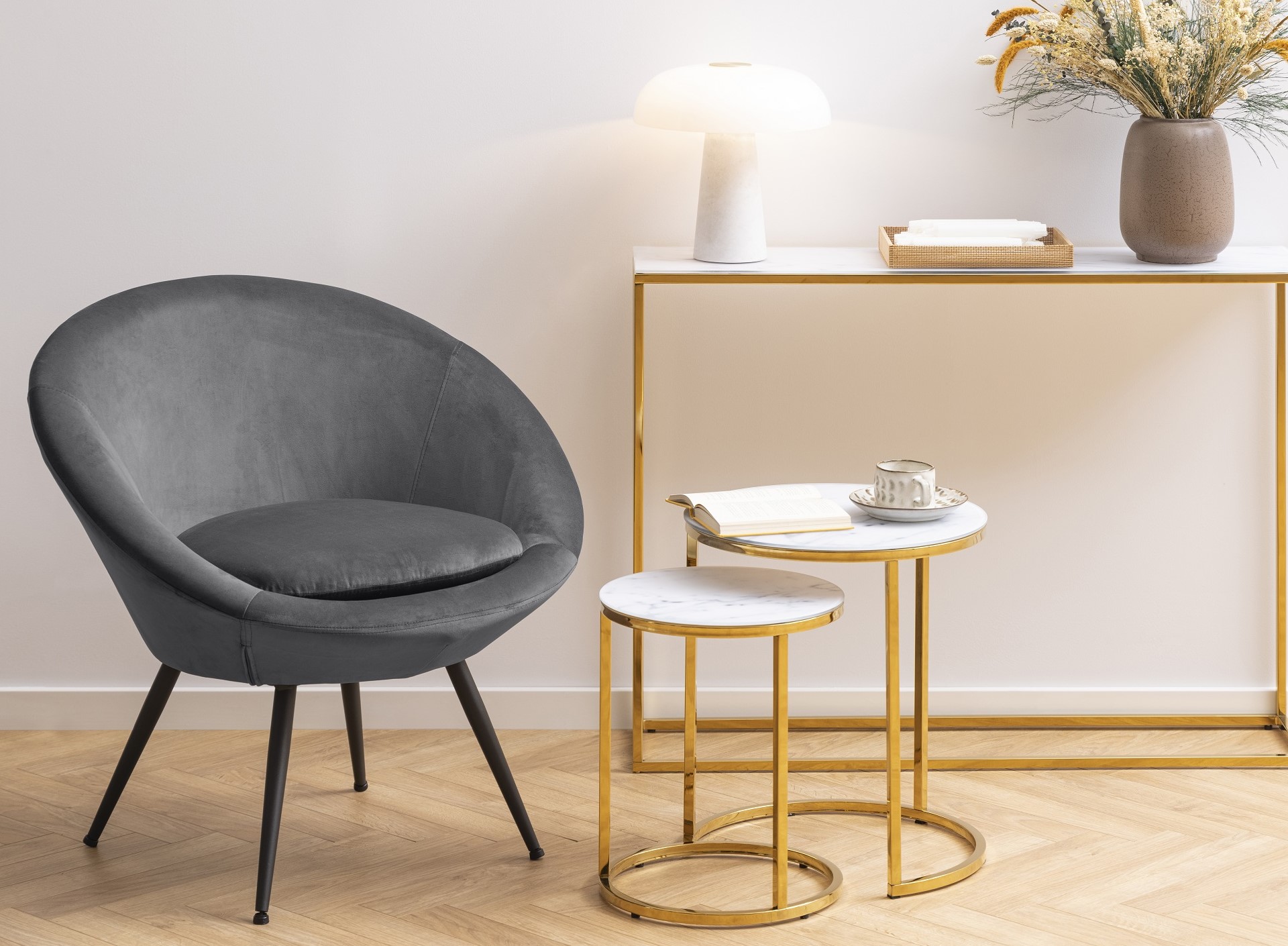 Farben und Stile: Beistelltisch-Sets gibt in den unterschiedlichsten Looks: Marmor-Optik mit goldenen Tischbeinen, Massivholz, pulverbeschichtete, schwarze oder weiße Metalltische, Glastischplatte mit Korpus aus Metall sowie ausgefallene Kombinationen aus Holz und Metall.